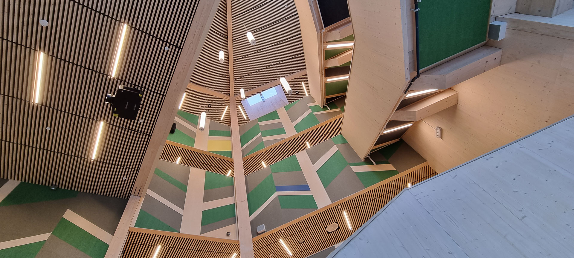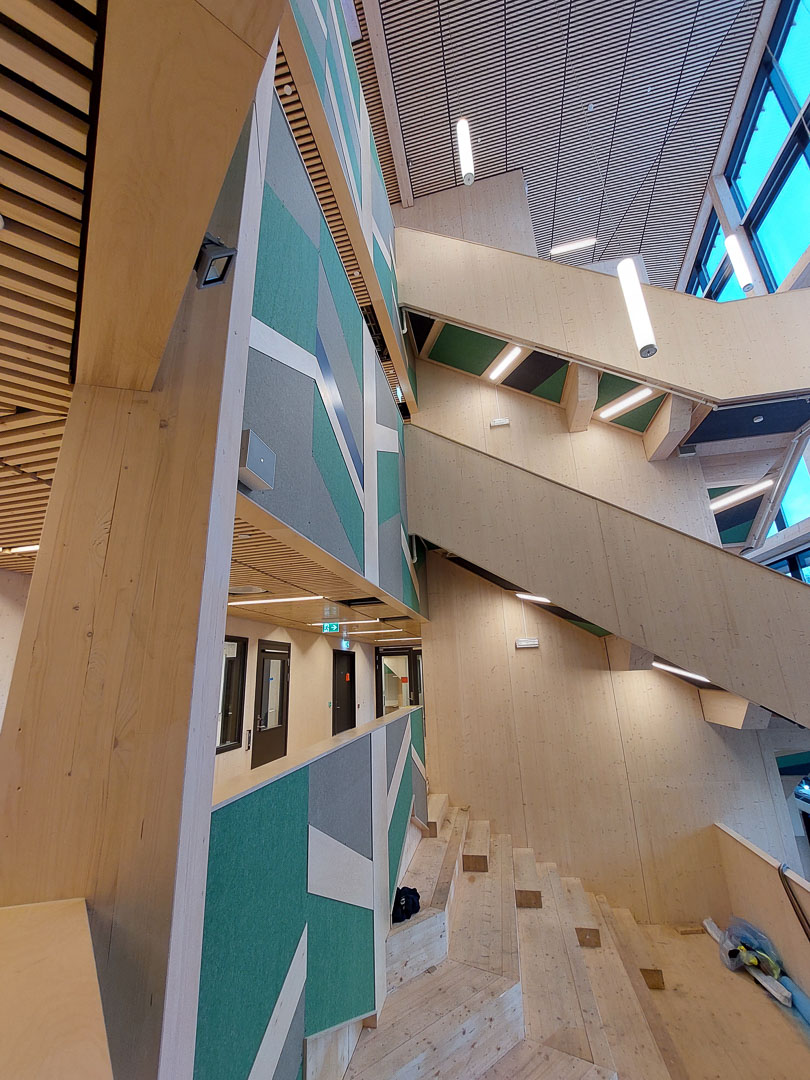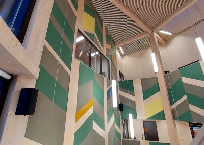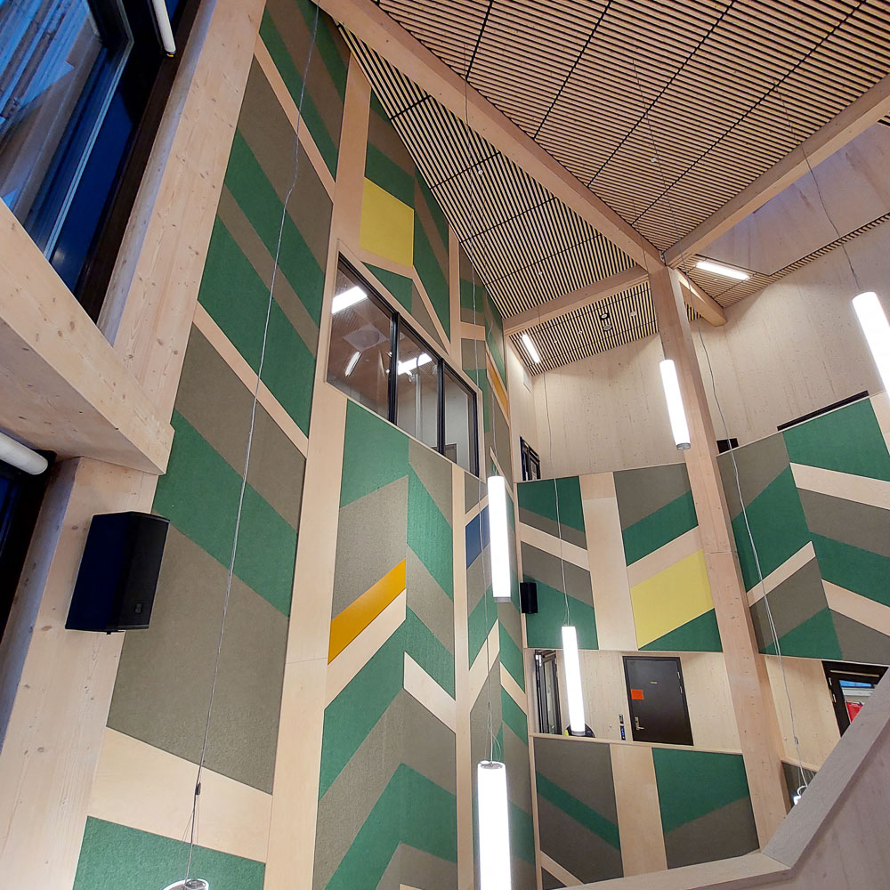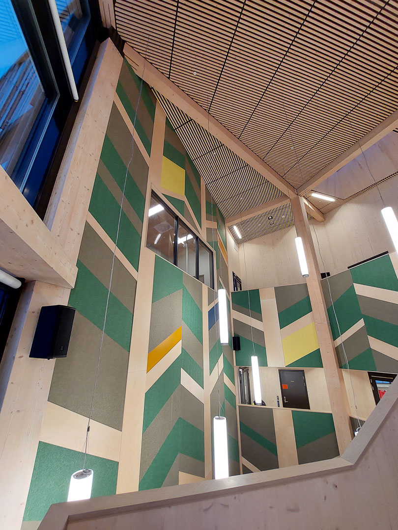 Otretek er stolte av å ha bidratt med løsninger som løfter Båsmo skole estetisk og akustisk, og som skaper inspirerende omgivelser for både elever og ansatte.