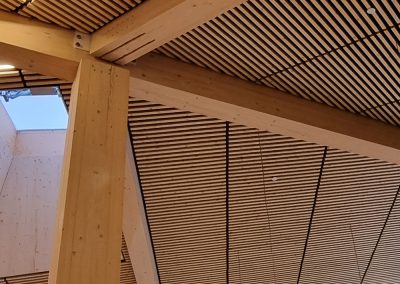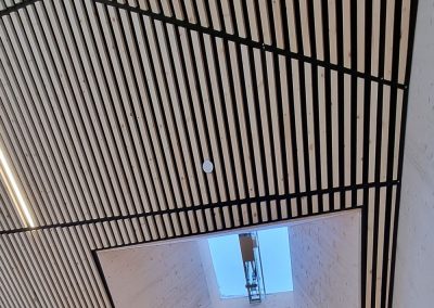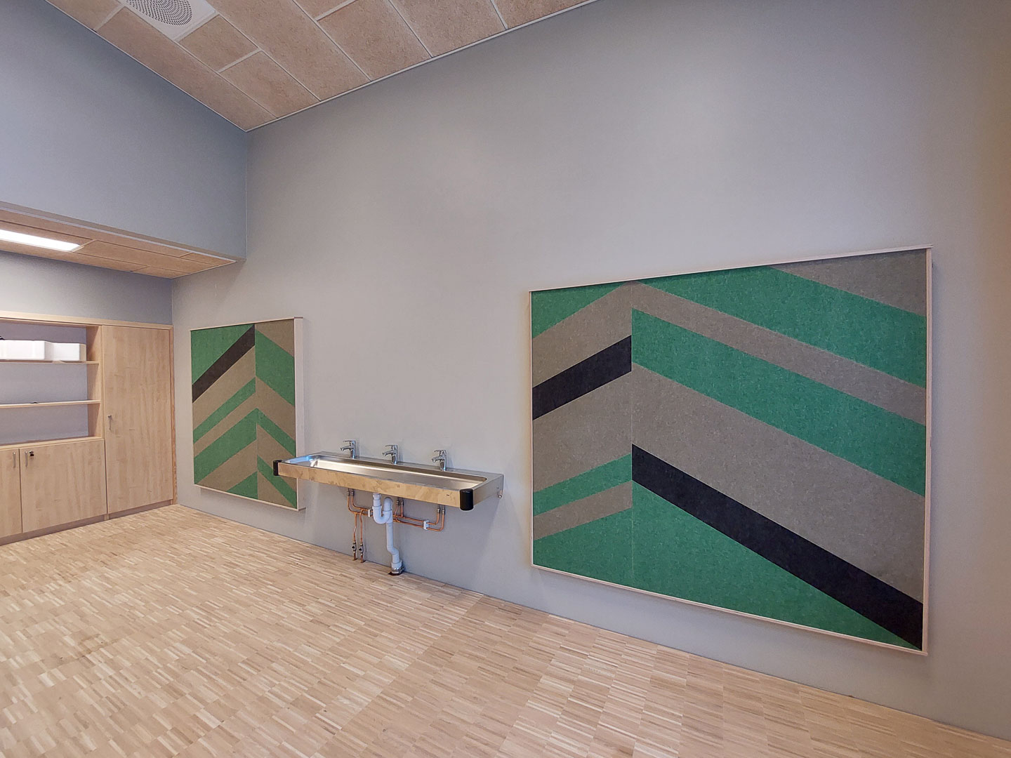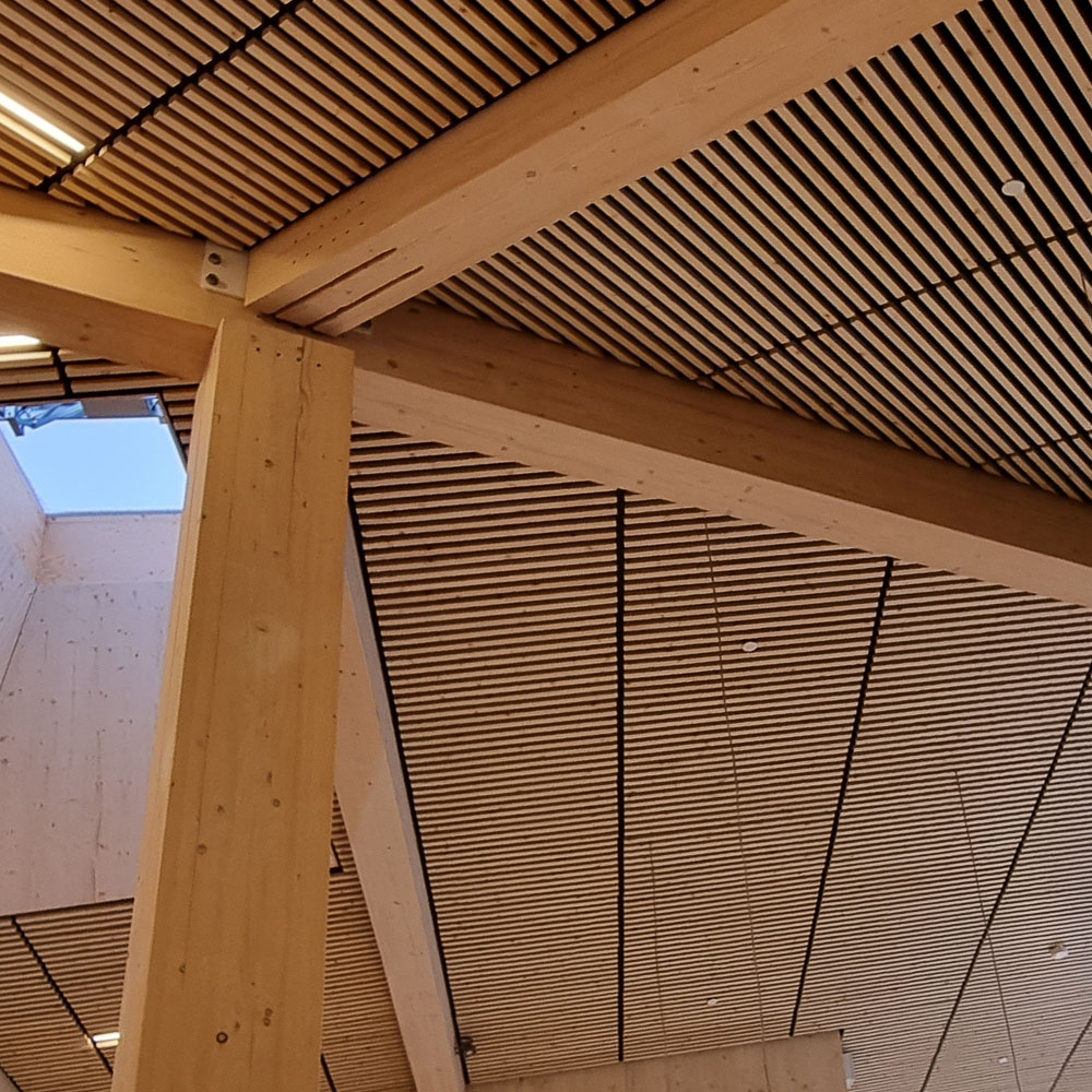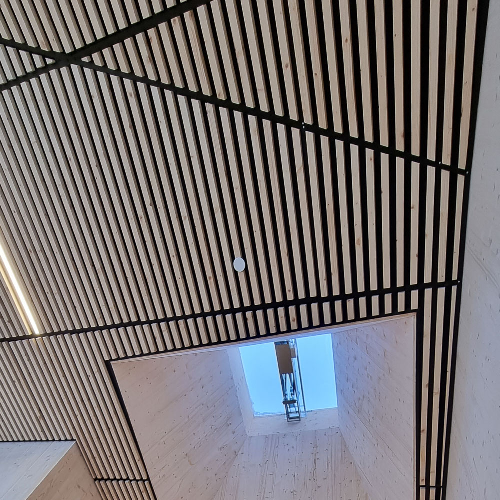 Otretek har levert spilehimlinger, veggdekor, sittebenker og akustiske absorbenter til Båsmo skole. Løsningene skaper inspirerende og estetiske lærings- og oppholdssoner, samtidig som de styrker skolens arkitektoniske helhet og romfølelse.