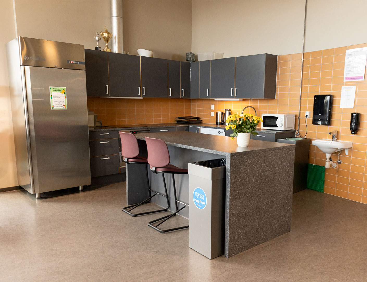 Otretek er stolte av å ha bidratt til å løfte kvaliteten og helheten i Lade skole med robuste spesialinnredninger og arkitekttegnede perforert himling som styrker både romfølelse og akustisk kvalitet.