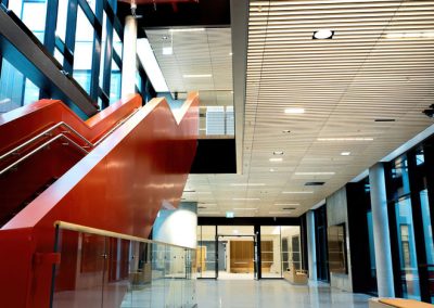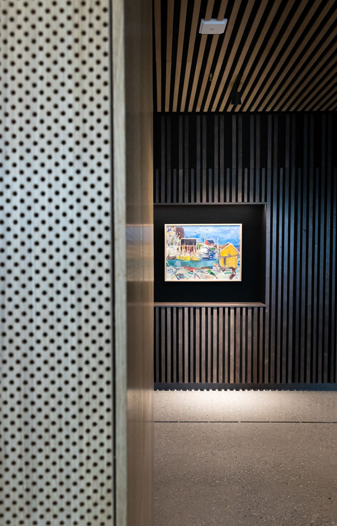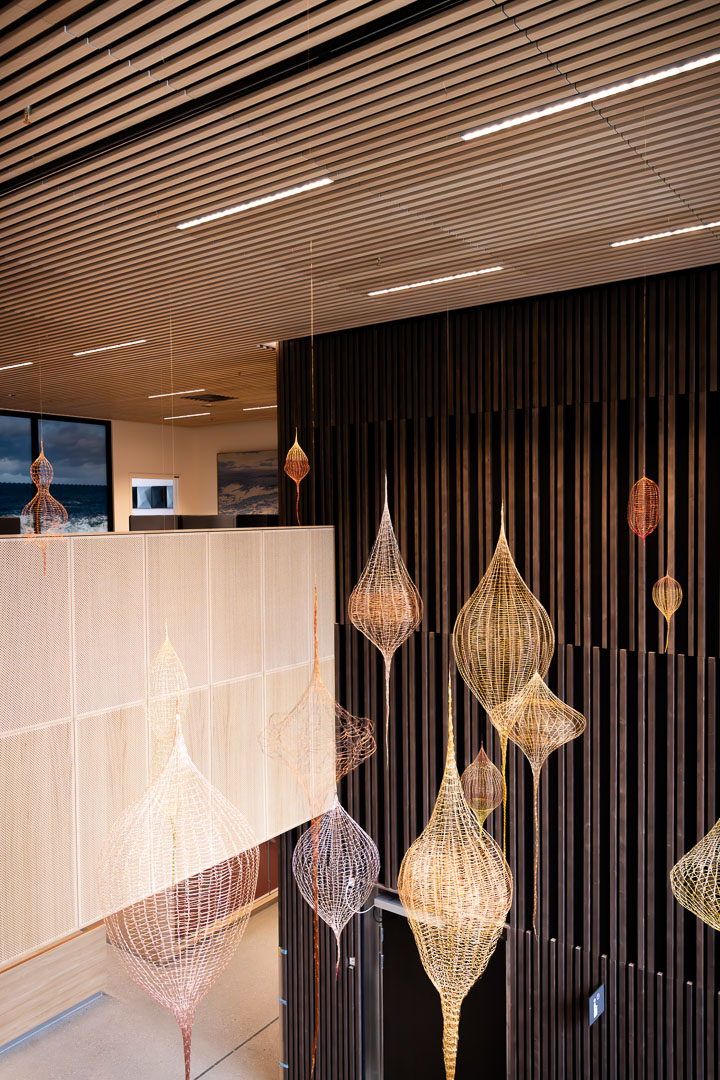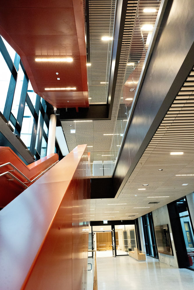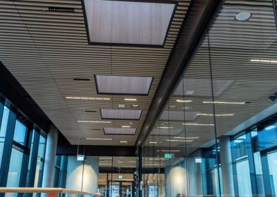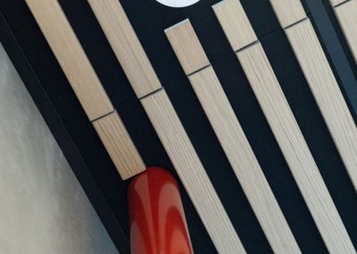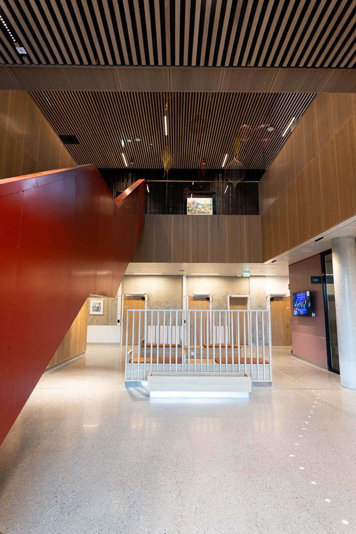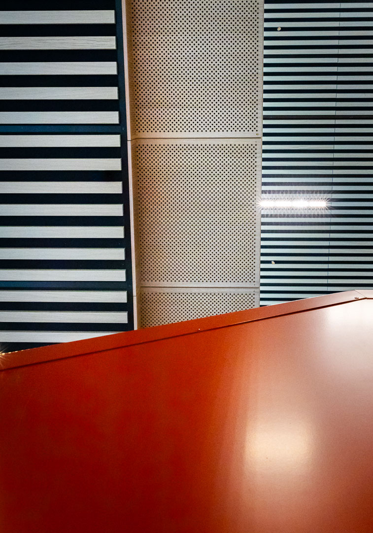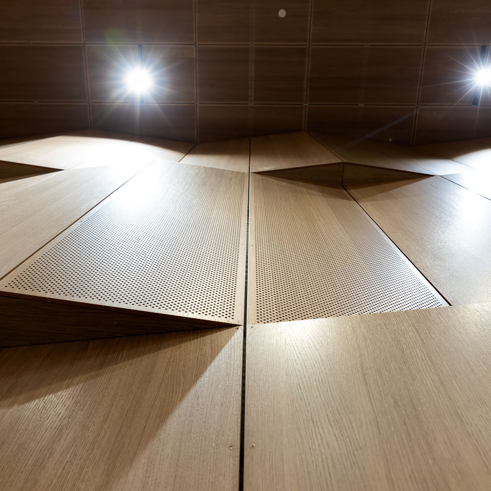 Auditoriet utmerker seg med sin unike arkitektur, hvor Otretek har montert perforerte og glatte plater på kassetter i spesielle vinkler. Dette skaper både et visuelt særpreg og et behagelig lydmiljø. I tillegg har vi levert veggpaneler med tredimensjonale mønstre i seremoni- og visningsrom, som bidrar til både estetikk og akustikk.